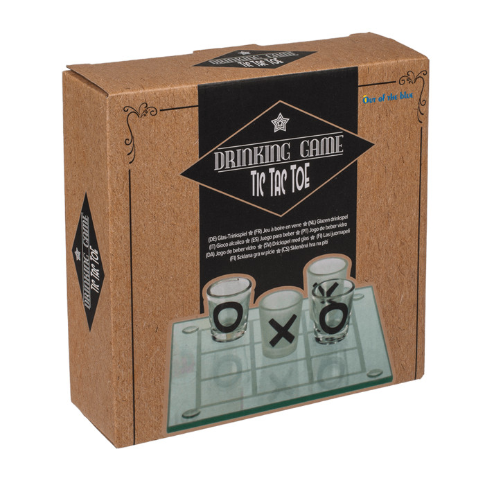 Amőba játék egy 13*13cm-es táblával és 9db rövid italos pohárral.
