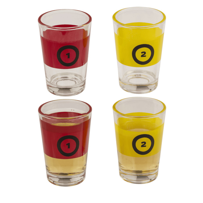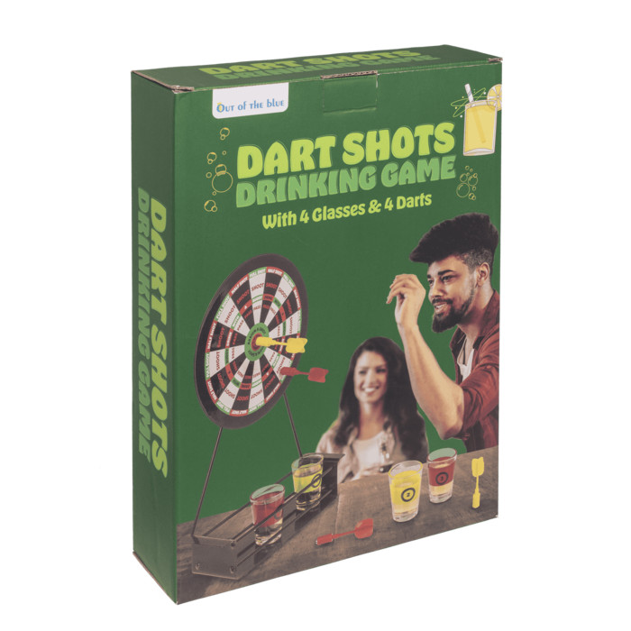 Darts játék 4 italos pohárral és 4 darts tűvel.