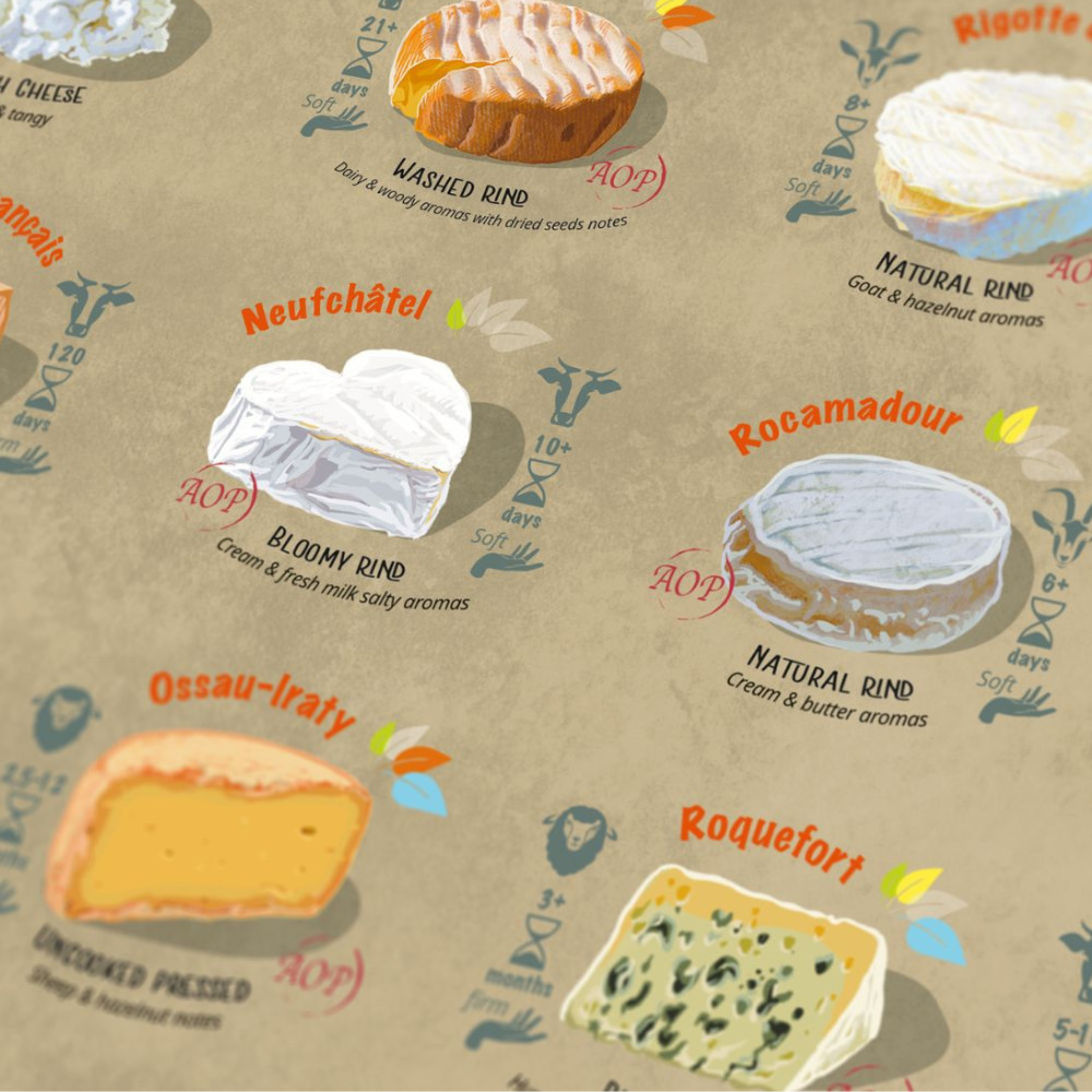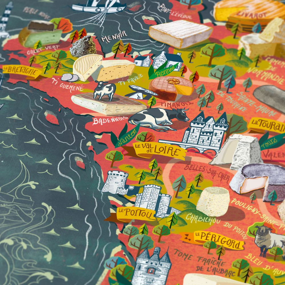 Indulj el a sajtok Tour de France túráján ezzel a részletgazdag, kézzel illusztrált kirakóssal!Utazz végig Franciaországon Normandiától egészen Korzikáig, és fedezd fel az ország lenyűgöző sajtkultúráját. Északtól délig minden sajt egy új terroirt, ízvilágot és több száz éves hagyományt tár eléd. Ahogy haladsz a kirakással, fokozatosan feltárulnak előtted Franciaország ikonikus sajtjai – és néhány titkos, kevésbé ismert kincs is.