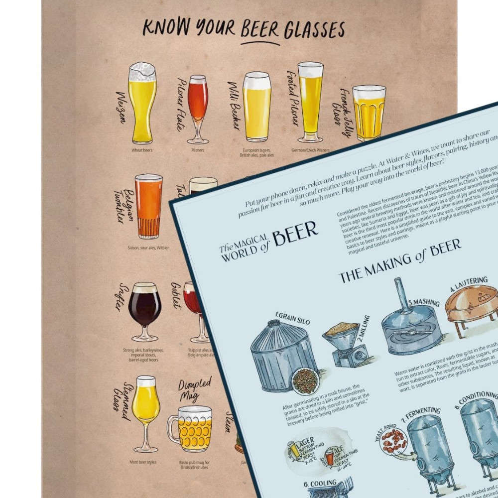 A magával ragadó dizájnon túl a dobozban egy bevezető is található a sörfözési alapokról és sörpárosításról, továbbá egy illusztrált útmutató a söröspoharakhoz és egy részletes íztérképet, amely segít eligazodni a világ változatos sörstílusai között. Készülj fel, hogy elmerülsz ebben a varázslatos és ízletes univerzumban, darabról darabra haladva.